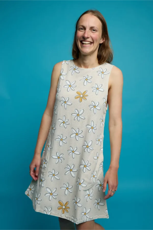 Our Jessie dress is here! A super happy, flowy and comfortable dress made for anyone and everyone with a linen and rayon blend fabric! This dress falls so beautifully – you literally put it on and you’re immediately ready to get out and go! It’s fun, bright and can be worn in both summer and winter! Just throw a pair of stockings and boots on when it’s cold and you’re sorted! This dress has POCKETS and will make you feel like you’re a magical fairy floating around on planet earth! We LOVE this dress and hope you do too! Just by wearing this dress you will bring sunshine and happiness into every room you walk into and it’s guaranteed to make you smile! 🙂